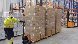 Se trata de una partida de 200.000 mascarillas quirúrgicas que ha sido trasladada del Aeropuerto de Zaragoza a la nave del Servicio Aragonés de Salud en Plaza, para de ahí ser distribuidas a centros hospitalarios y residencias de la comunidad.
