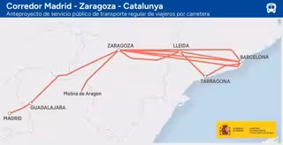 Se incluirá el servicio Madrid-Guadalajara-Zaragoza-Barcelona; el Madrid-Zaragoza-municipios de Lleida y Tarragona; así como una ruta entre Zaragoza y la comarca del Señorío de Molina-Alto Tajo. Estos tráficos son actualmente atendidos por las concesiones VAC-099 y VAC-263.
