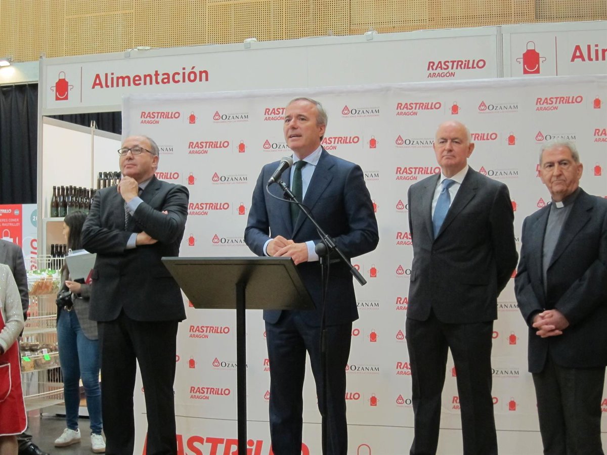 El alcalde de Zaragoza, Jorge Azcón, durante la inauguración del Rastrillo Aragón. - EUROPA PRESS