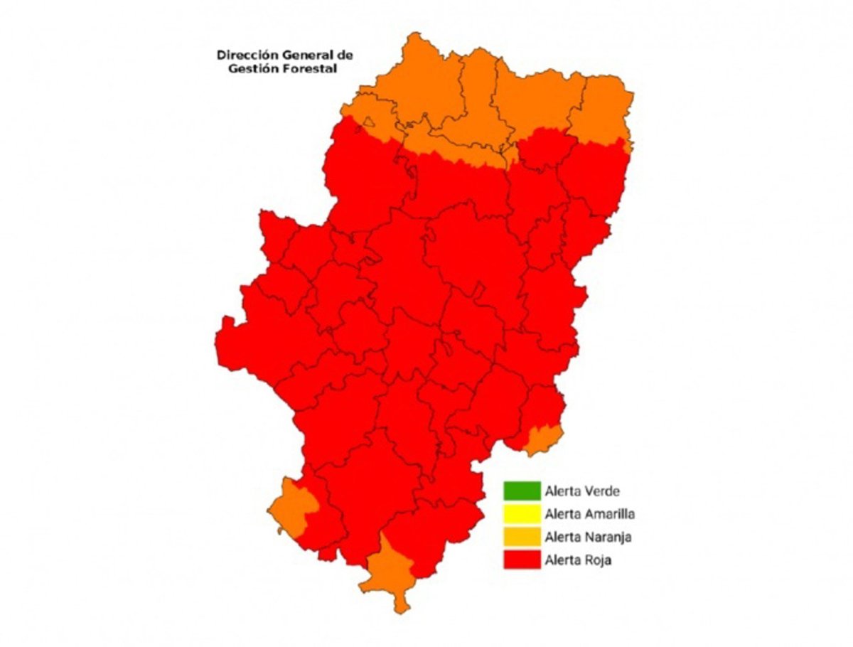 En concreto, permanecen en nivel de alerta rojo las siguientes zonas: Turia, Valle del Ebro Agrícola, Somontano Sur, Somontano Oriental, Maestrazgo, Mijares, Muelas del Ebro - Zuera, Bajo Ebro Forestal, Gúdar, Moncayo y Aranda, Jiloca-Gallocanta, Depresión del Jalón, Muelas del Ebro - Alcubierre, Muelas del Ebro - Valmadrid, Somontano Occidental, Rodeno, Sierras Ibéricas Centrales y Prepirineo Oriental, ha informado el Gobierno de Aragón.