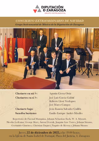 El grupo instrumental de la Diputación de Zaragoza (DPZ) ofrecerá este jueves, 22 de diciembre, en la iglesia de Santa Isabel de Portugal a las 19.00 horas, un concierto con motivo de la Navidad. La entrada al recital será gratuita y libre hasta completar aforo.