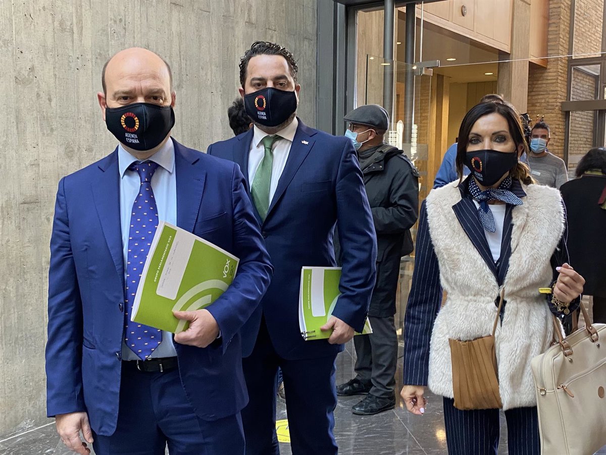 Archivo - Los diputados de VOX de las Cortes de Aragón: Santiago Morón, David Arranz y Marta Fernández. - EUROPA PRESS. - Archivo