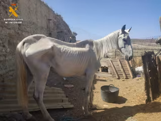 La Guardia Civil ha detenido a una persona en la localidad zaragozana de Épila como presunta autora de delitos de maltrato animal. En la parcela donde albergaba a sus animales, se localizaron dos perros momificados y un caballo en muy malas condiciones y con síntomas de inanición.