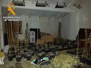 En su interior los agentes hallaron un lugar completamente acondicionado con los elementos necesarios para el cultivo de marihuana como sistemas de extracción de aire, lámparas halógenas, termostatos, humidificadores, bidones de plástico para contener agua que suministraban el riego, fertilizantes, una báscula de precisión, bolsas de plástico, una termoselladora para el cierre de las mismas, una compleja instalación eléctrica cuya electricidad era defraudada del fluido público y un total de 780 plantas.