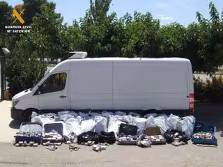 Durante la comprobación, la Guardia Civil se percató de un fuerte olor, característico de la marihuana que provenía del interior, lo que motivó la inspección del equipaje. Así, tras la apertura de una de las maletas hallaron varios paquetes con envoltorio de plástico transparente, con una sustancia marrón compatible con hachís.