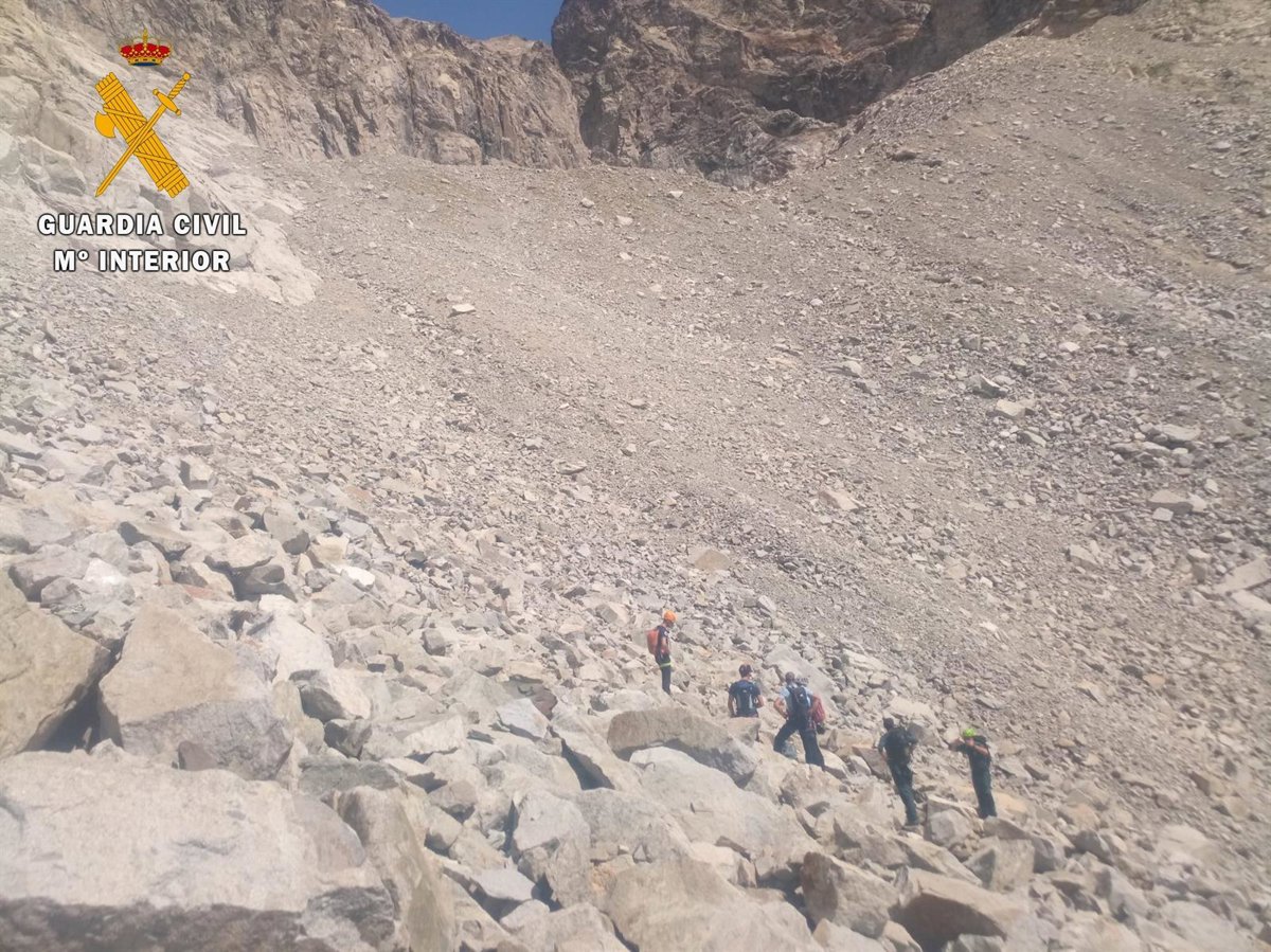 La Gendarmería del PGHM de Pierrefitte-Nestalas solicitó la colaboración de la Guardia Civil y el pasado lunes, 15 de agosto, se organizó un dispositivo conjunto de componentes de montaña, intensificando la búsqueda por debajo de la Gran Diagonal hacia el Glaciar de las Fondiellas.