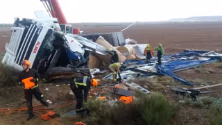 El conductor ha quedado atrapado en el interior de la cabina y ha tenido que ser excarcelado por los bomberos de la comarca del Bajo Cinca, que han acudido desde el parque de Fraga, y los bomberos de la Diputación de Zaragoza, que han ido a apoyarles desde el parque de Caspe.
