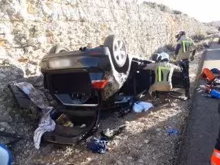 El siniestro se ha producido a las 16.20 horas de este domingo, 23 de febrero, en el kilómetro 53 de la citada vía, cuando el turismo se ha salido de la carretera y ha quedado boca abajo.