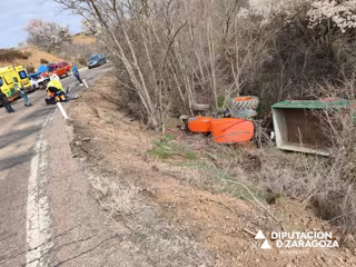 Una persona ha resultado herida al volcar el tractor que conducía y caer por un terraplén de unos dos metros en la carretera autonómica A- 211 a la altura de Daroca (Zaragoza).