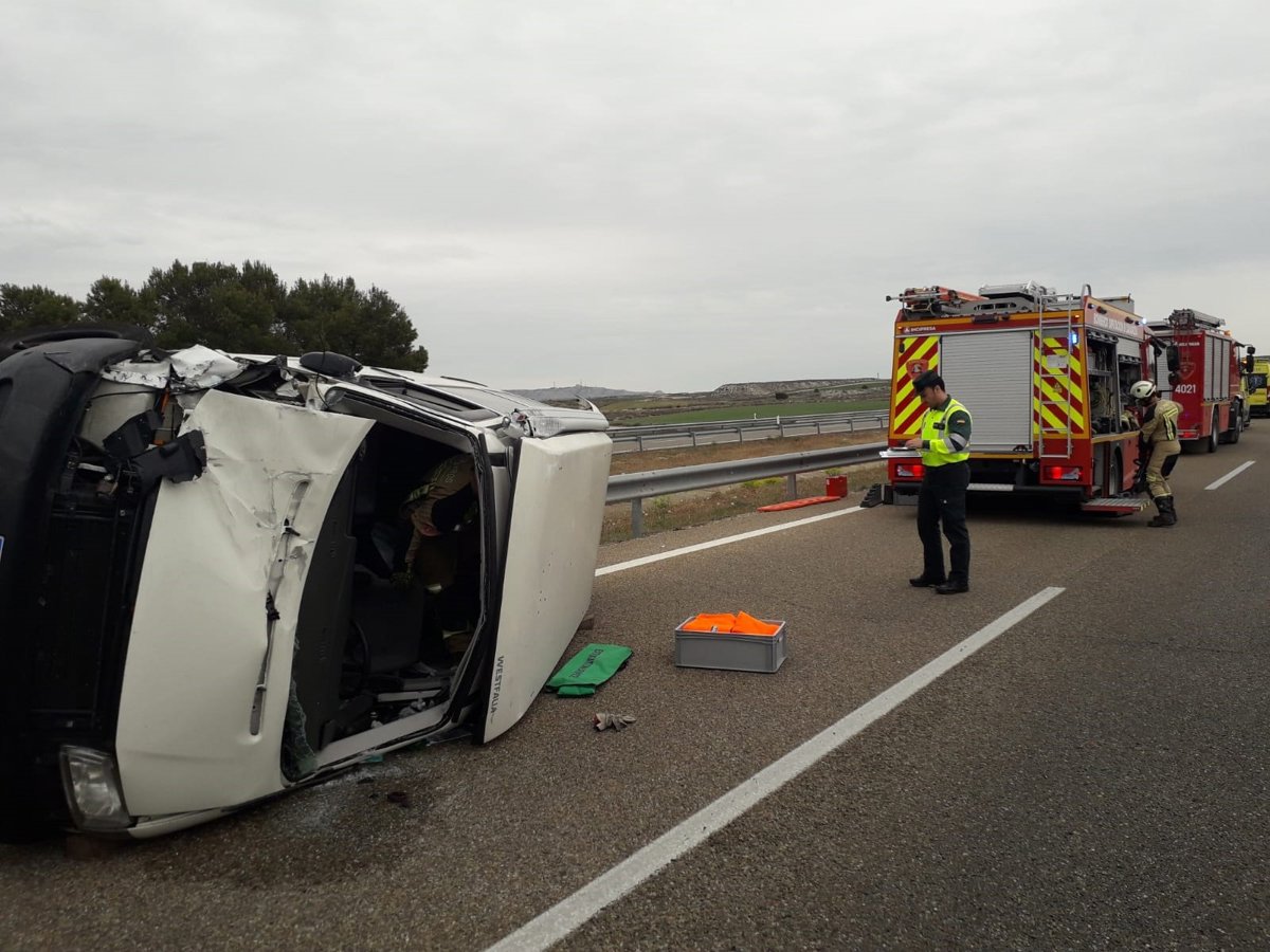 Una persona ha resultado herida al volcar una furgoneta en la AP-2, en el municipio de La Almolda, según ha informado la Diputación Provincial de Zaragoza (DPZ).