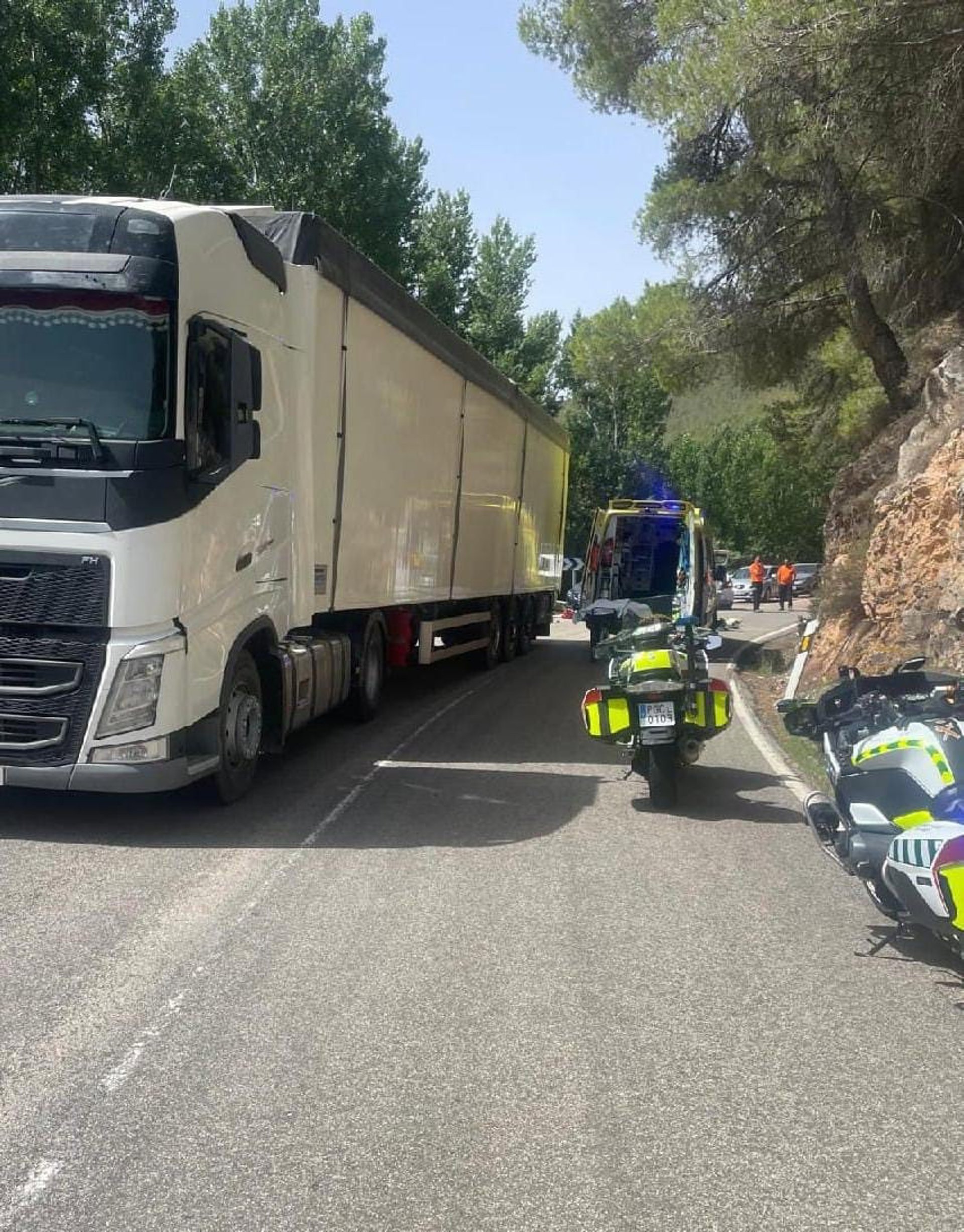 Por otro lado, la acompañante, que ha resultado herida grave, ha sufrido aplastamiento de su brazo izquierdo por parte de un vehículo articulado que circulaba en sentido opuesto. Un helicóptero medicalizado la ha evacuado al Hospital Miguel Servet de Zaragoza.