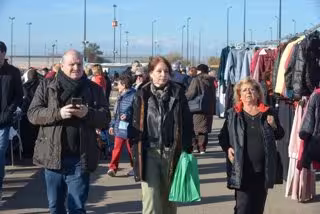 La consejera municipal de Economía, Innovación y Empleo del Ayuntamiento de Zaragoza, Carmen Herrarte, en el mercado ambulante de La Almozara - DANIEL PÉREZ