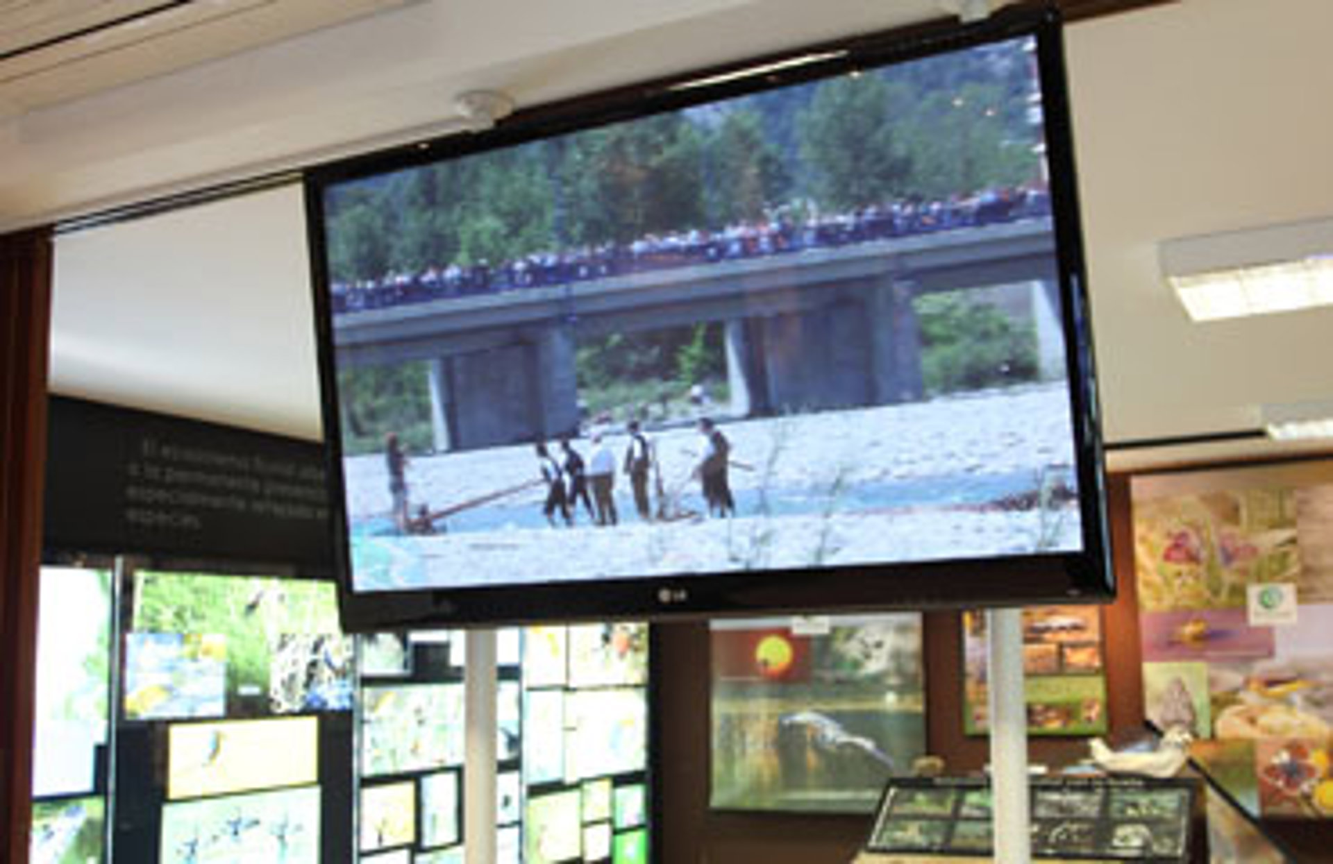 La exposición consta de un equipo 3D (tres dimensiones) para la presentación de temáticas relacionadas con 'El hombre y el río', como infraestructuras hidráulicas, puentes, molinos, red de acequias de los tres sistemas de riego existentes o datos sobre las poblaciones bañadas por el Cinca, entre otros.