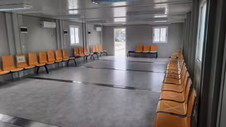 Para poder hacer esta mejora, se ha tenido que cambiar de ubicación esta sala de espera, que ahora se encuentra en seis módulos prefabricados en una zona exterior anexa a las Urgencias. Dicha sala de espera para acompañantes cuenta con los mismos servicios que la anterior y con una sala de información para estos familiares.