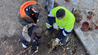 Un operario del Ayuntamiento de Huesca ayuda a varios alumnos de tercero de primaria del colegio San Vicente en la jornada de plantación celebrada en el Parque Universidad con motivo de la concesión de la Greed Flag a este espacio verde de Huesca. - AYUNTAMIENTO DE HUESCA