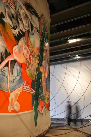 La pieza fusiona una de las obras monumentales de Frank Stella, un mural de 30 metros de largo y una tonelada de peso realizado en 2008, con una estructura-escultura de acero de Santiago Calatrava, diseñada con una forma atípica en arquitectura y en geometría, un toroide, "una figura en armonía y equilibrio perfectos que se encuentra ya presente en la obra del arquitecto español desde sus inicios", han explicado las mismas fuentes.