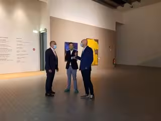 El consejero de Cultura de Aragón, Felipe Faci, visita el IAACC 'Pablo Serrano' el día de su reapertura tras el cierre por la pandemia del coronavirus. - GOBIERNO DE ARAGÓN