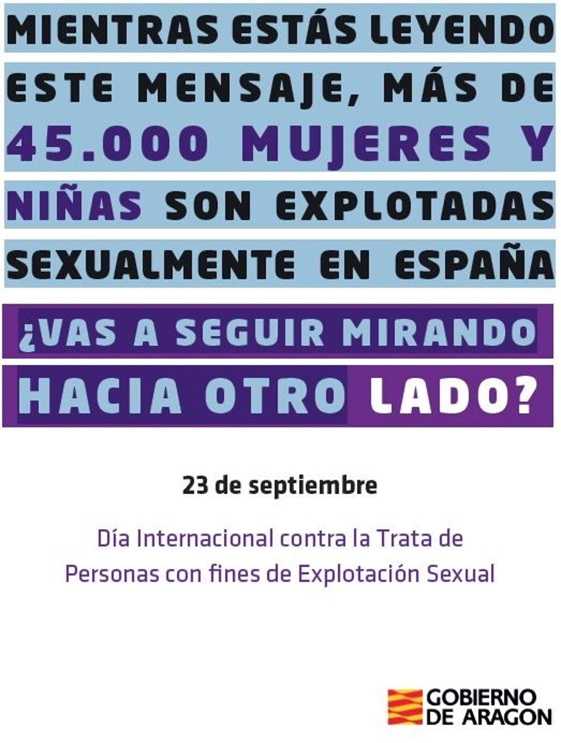 Asimismo, con motivo del Día Internacional contra la Trata de Personas con Fines de Explotación Sexual, el Instituto Aragonés de la Mujer ha emitido un manifiesto institucional en la que manifiesta "el compromiso absoluto" del Gobierno de Aragón de luchar contra esta lacra social.
