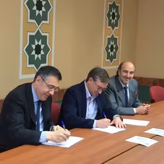 El director provincial en Teruel de Ibercaja, Bienvenido Sesé, y el presidente de la Comarca Comunidad de Teruel, Joaquín Juste, han firmado un convenio. La Obra Social de esta entidad aportará 10.000 euros al programa de ayuda a autónomos que la comarca pone en marcha cada año en localidades de menos de 300 habitantes.