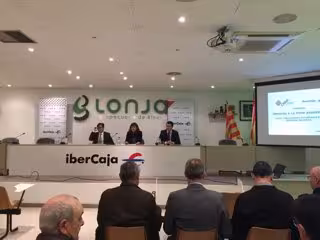 Ibercaja y la Confederación de Empresarios de Aragón (CREA) han celebrado este jueves, 17 de marzo, la jornada '2016, crecimiento económico en un entorno incierto', en el salón de actos de la Lonja Agropecuaria de Binéfar (Huesca). La sesión ha facilitado información para ayudar a las empresas a mejorar su gestión diaria.