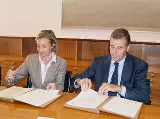 El presidente de la Diputación de Huesca, Antonio Cosculluela, y la directora de la Obra Social de Ibercaja, María Teresa Fernández, han firmado un convenio de colaboración que posibilita la continuación de la colaboración económica en diferentes actividades culturales. La aportación de la entidad de ahorro se traducirá en la aportación de 75.000 euros.