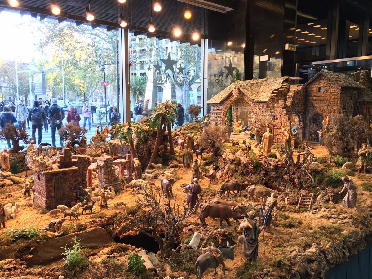 Así se inicia la historia del actual Belén que ocupa 50 metros cuadrados en su estructura y cuenta con más de 200 figuras. Su estructura, en forma de escalera, permite aprovechar al máximo el espacio de exposición y la sensación de perspectiva. Está construido para ser visto en todo su perímetro, tanto desde el interior de la oficina, en horario de atención al público, como a través del escaparate exterior, las 24 horas del día.