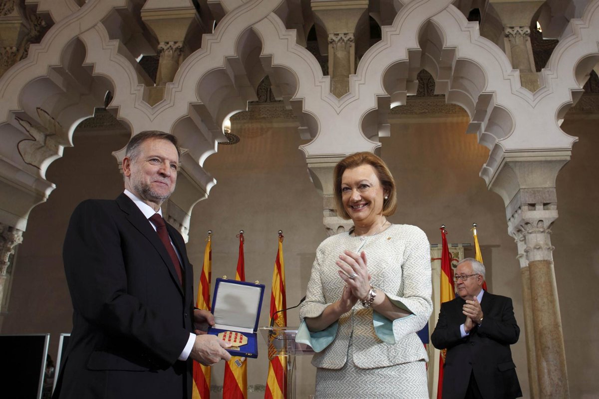Iglesias ha recibido de manos de la presidenta del Ejecutivo regional, Luisa Fernanda Rudi, la Medalla de Aragón 2012 en el acto oficial de celebración del Día de Aragón, que ha tenido lugar en el Palacio de La Aljafería, sede de las Cortes de Aragón.