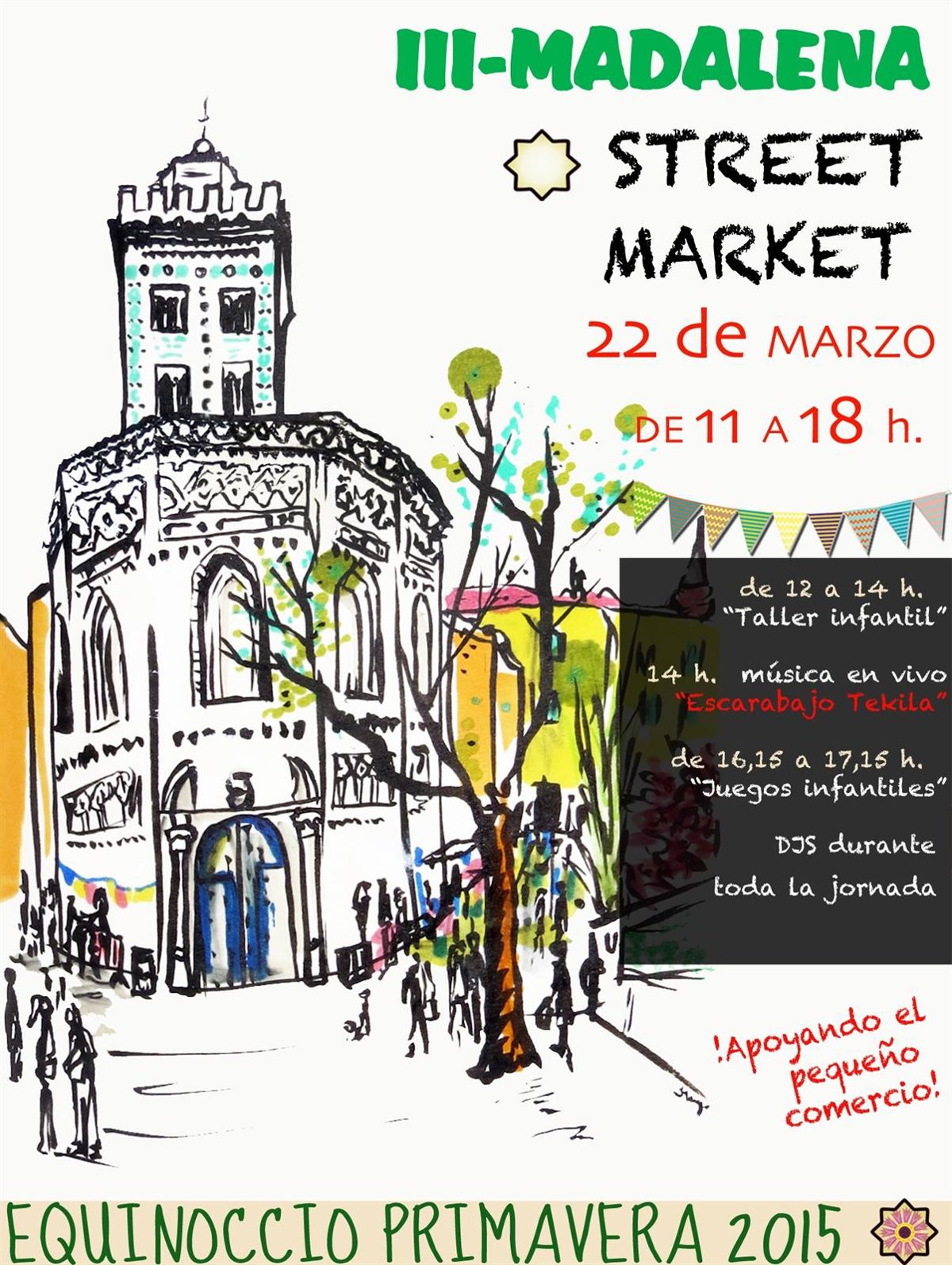 El III Madalena Street Market comenzará a las 11.00 horas acompañado de la música del Dj Rastaúl; a las 12.00 horas se ha programado el taller infantil "Decora tu barrio", para utilizar el material en la Semana Cultural de la Madalena, de la mano de los 7spacios.