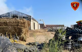 Los bomberos de la Diputación de Zaragoza se encuentran en estos momentos trabajando en la extinción de un incendio originado en una nave en el polígono de Valdeferrín de Ejea de los Caballeros. Ha ardido un millón de kilos de hierba y la nave ha quedado totalmente calcinada.
