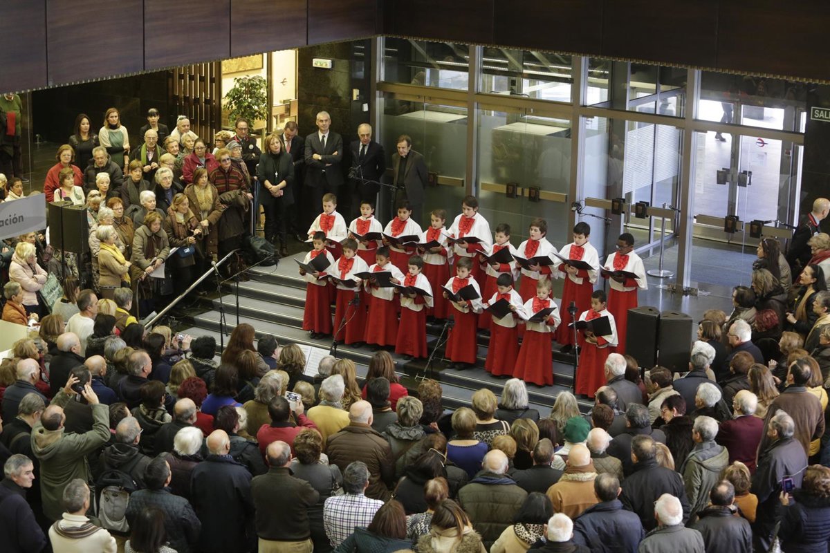 Los "Infanticos del Pilar" han ofrecido este miércoles su tradicional Concierto de Navidad ante el belén de la oficina principal de Ibercaja, en la plaza Paraíso de Zaragoza.