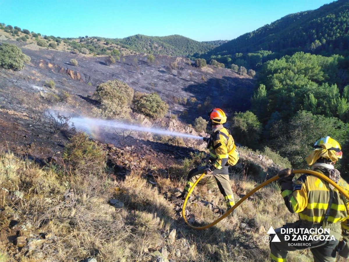 Los bomberos de la Diputación de Zaragoza (DPZ) y personal de Infoar están ultimando la extinción de un incendio forestal que ha comenzado esta tarde en el término municipal de Torrijo de la Cañada (Zaragoza).