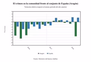 Aragón se sigue consolidando la tendencia a la baja de los delitos y faltas y se mantiene como la quinta comunidad autónoma más segura de España con 28,5 infracciones penales por cada mil habitantes. Este dato se sitúa 15,6 puntos por debajo de la media nacional.