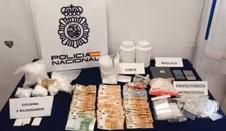 La Policía Nacional ha detenido en Teruel a tres personas como presuntos autores de un delito de tráfico de drogas, después de incautarse de dos kilos de cocaína, una de las mayores aprehensiones de esta sustancia en la provincia, así como más de 5.000 euros en efectivo y diversos útiles para la distribución.