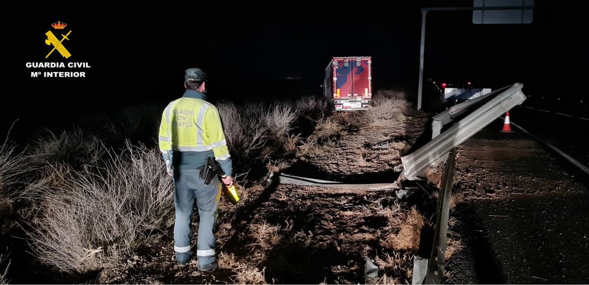 El accidente se produjo este jueves, a las 20.00 horas, en el punto kilométrico 407,900 de la N-II, en el término municipal de Candasnos (Huesca), y el conductor, un hombre de 25 años y vecino de Alicante, resultó ileso, ha informado el Instituto Armado.