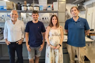 En la foto, parte del equipo investigador que ha desarrollado el trabajo, de izquierda a derecha: Jesús Santamaría, Ignacio García-Peiró,María Sancho-Albero y José Luis Hueso. - UNIZAR