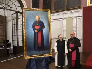 La archidiócesis de Zaragoza ha presentado este jueves, 17 de octubre, el retrato que ha realizado la pintora y monja Isabel Guerra al arzobispo monseñor Vicente Jiménez, donde le muestra como "pastor, guía y padre" y que también transmite, según ella, el alma del prelado, su "serenidad" y "seguridad".