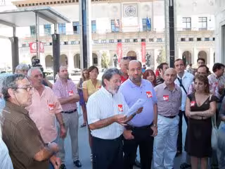Los cargos públicos y orgánicos de IU-Aragón se han concentrado este martes en Zaragoza frente a la Delegación del Gobierno en Aragón para protestar contra la reforma de la Constitución pactada por el Partido Socialista (PSOE) y el Partido Popular (PP) para limitar el déficit público y reclamar que en caso de que la reforma supere los trámites parlamentarios se convoque un referéndum.