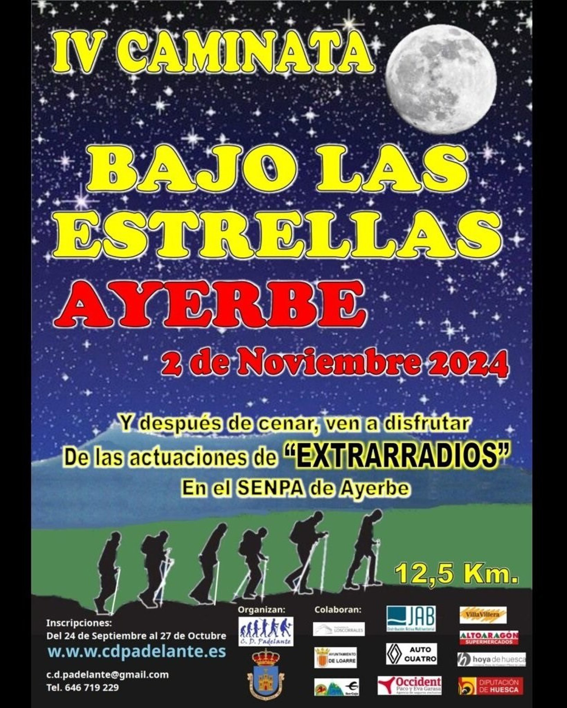 AYERBE (HUESCA), 13 (EUROPA PRESS) La cuarta edición de la Caminata Nocturna Bajo las Estrellas de la localidad oscense de Ayerbe brindará el próximo 2 de noviembre una nueva oportunidad de disfrutar de una andanda recreativa en plena naturaleza bajo un cielo estrellado.