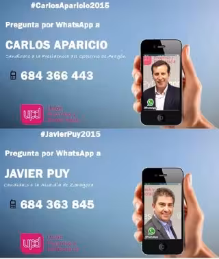 Los candidatos de UPyD a la Presidencia de Aragón y a la Alcaldía de Zaragoza, Carlos Aparicio y Javier Puy, respectivamente, atenderán a los ciudadanos desde este jueves mediante la aplicación WhatsApp a través de dos números habilitados para ello, en los teléfonos 684 366 443 (Aparicio) y 684 363 845 (Puy).