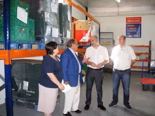 El jefe de sector de oficinas de Correos de Zaragoza, Carlos Barbas, ha visitado las instalaciones del Banco de Alimentos con motivo de la firma un convenio de colaboración de la empresa postal con la Federación Española de Bancos de Alimentos (FESBAL) que servirá para enmarcar y facilitar el apoyo entre ambas organizaciones, ya sea a través de campañas organizadas por FESBAL o con iniciativas promovidas por la empresa postal a nivel nacional, regional o local, relacionadas con la recogida de alimentos para los más necesitados.
