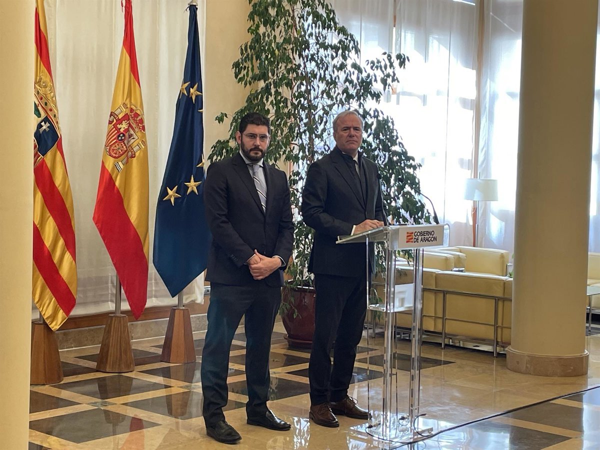 El presidente del Gobierno de Aragón, Jorge Azcón, y el vicepresidente primero, Alejandro Nolasco. - EUROPA PRESS.