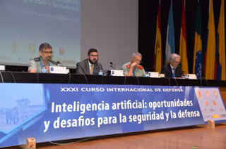 En su intervención, el ponente ha lanzado un mensaje a la sociedad al asegurar que "el Ejército está para muchas cosas como garantizar la seguridad y la defensa interior y exterior, pero hay una invasión vinculada a la IA que se puede infiltrar por toda la sociedad y que va a los puntos sensibles como son las infraestructuras críticas; hay que estar muy atentos a ello poniendo los medios necesarios para que eso no suceda".