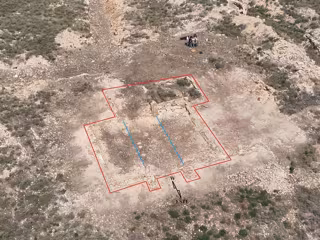 Marcas sobre el terreno con la probable distribución del templo hallado en Belchite. - AYUNTAMIENTO DE BELCHITE