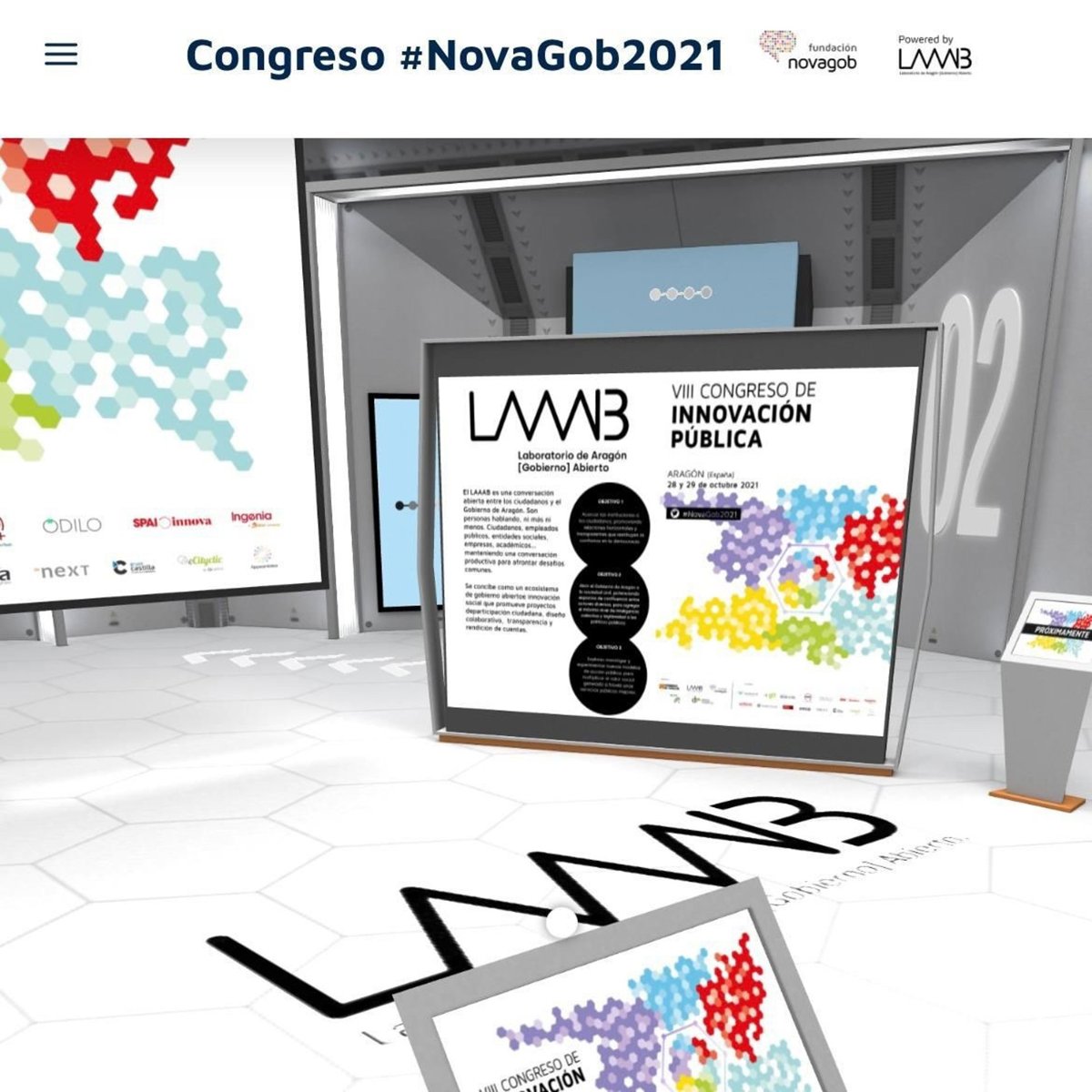 La versión virtual del LAAAB ya está operativa y su primera acción va a ser acoger el VIII Congreso de Innovación Pública #Novagov 2021, los próximos días 28 y 29 de octubre, una cita internacional para abordar la innovación pública y la gobernanza participativa, que en anteriores ediciones ha llegado a contar con cerca de 3.000 participantes, y que este año organiza el Gobierno de Aragón.