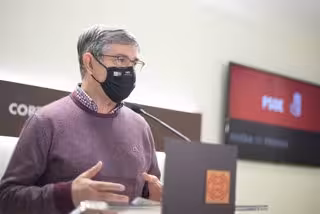 El portavoz de los socialistas en las Cortes, Vicente Guillén, explica que el presidente Lambán comparecerá para informar sobre los medidas para paliar los posibles efectos del conficto en Ucrania. - JOSE DAVID VALERO CABREJAS