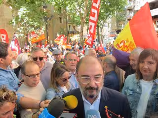 Se ha pronunciado así en declaraciones a los medios de comunicación, antes de participar, en Zaragoza, en la manifestación convocada por UGT y CCOO con motivo de la fiesta del 1 de mayo, Día Internacional de los Trabajadores, bajo el lema 'Subir salarios, bajar precios y repartir beneficios'.