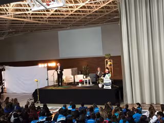 El acto se ha celebrado en el pabellón polideportivo de este centro educativo, ubicado en el paseo Reyes de Aragón, y sobre un escenario ambientado como el salón de una vivienda que simula la "casa de todos" en alusión al planeta Tierra.