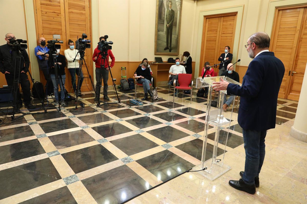 El presidente aragonés también ha aludido a los sectores de la hostelería y el turismo, solicitando a Pedro Sánchez que el dinero destinado en 2021 a estos sectores que no se les ha aportado lo sigan gestionando las comunidades autónomas para "desarrollar otro plan similar en 2022 en condiciones más asequibles a la realidad de los empresarios".