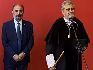 El presidente del Gobierno de Aragón, Javier Lambán, ha realizado las declaracones antes de asistir al inicio del año academico de Unizar, junto con el rector, José Antonio Mayoral. - EUROPA PRESS.