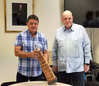 Durante la jornada, Leontxo García ha firmado en el libro de honor del Ayuntamiento de Alcubierre y su alcalde le ha entregado una reproducción de la torre mudéjar de la iglesia, al igual que a todas las figuras internacionales del ajedrez que han estado presentes en el festival durante sus catorce ediciones.